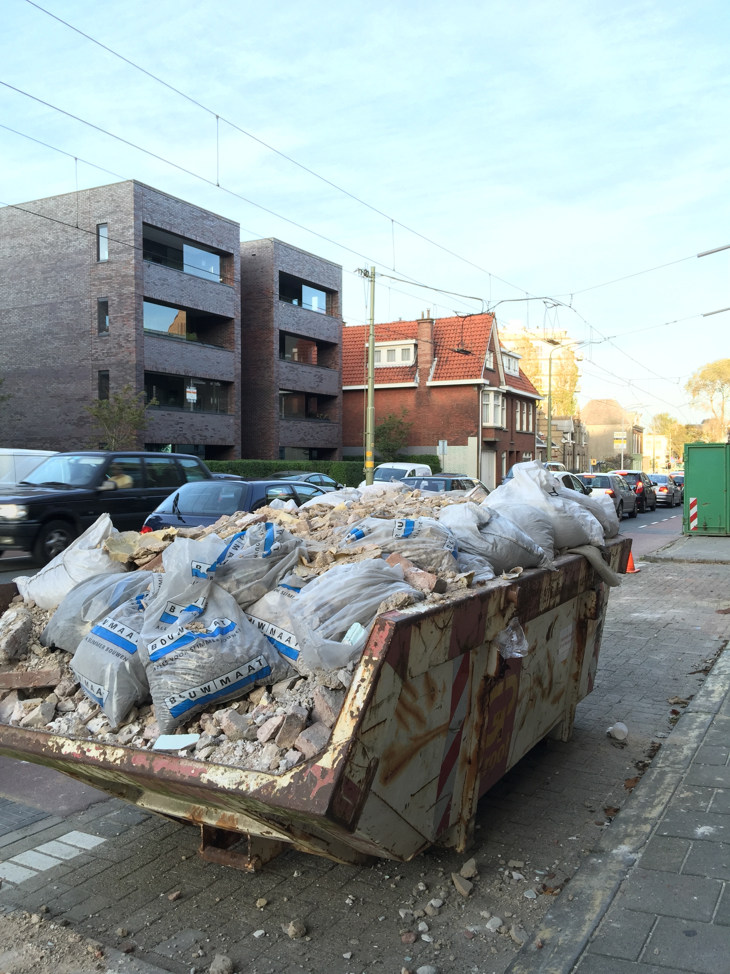 Eenmaal gesloopt moest al het afval nog afgevoerd worden, makkelijk gezegd dan gedaan, uiteindelijk maar alles via het raam naar buiten gegooid en vervolgens met kruiwagens naar een container gereden. Meer dan 6 kuub aan afval!