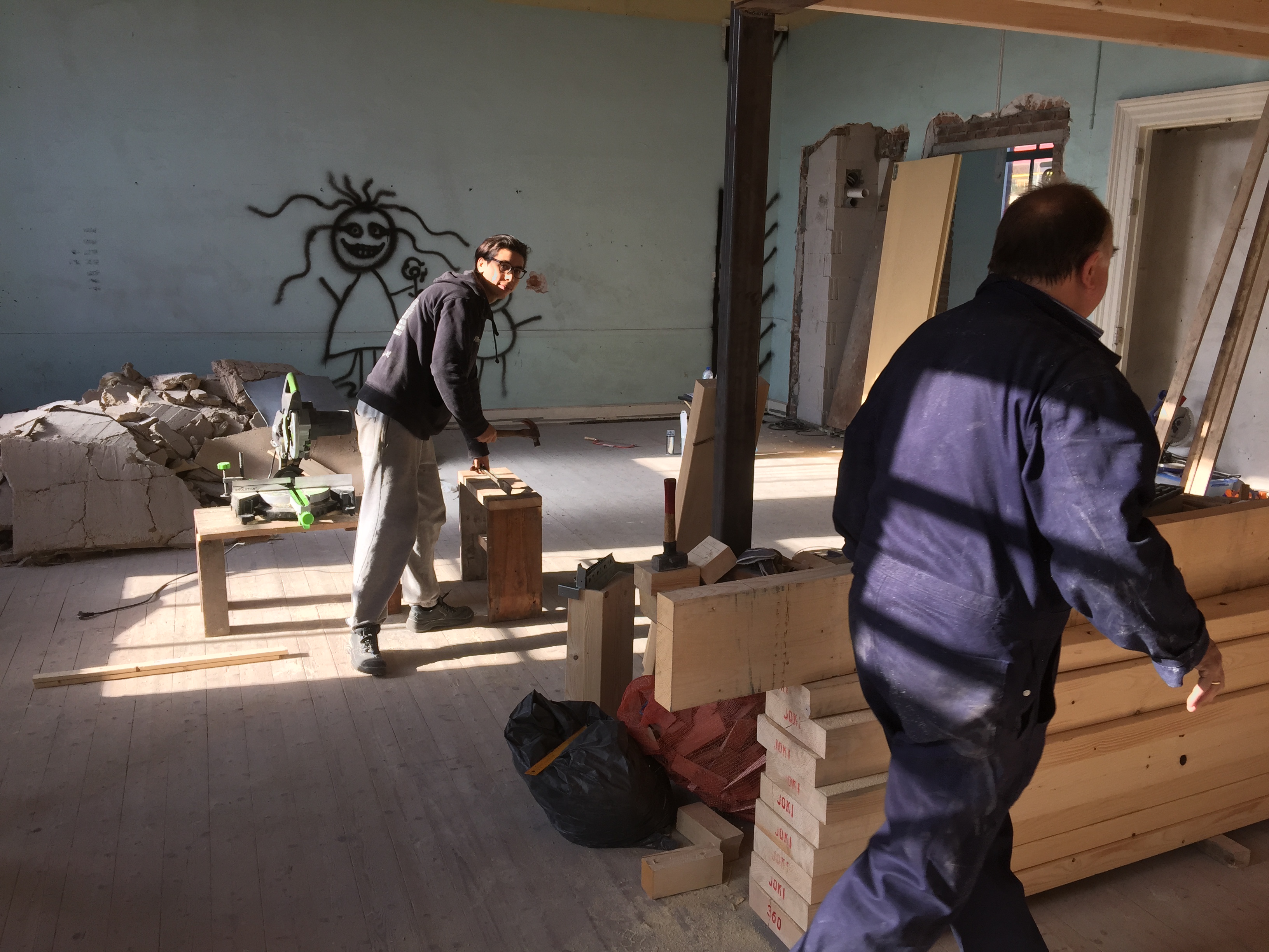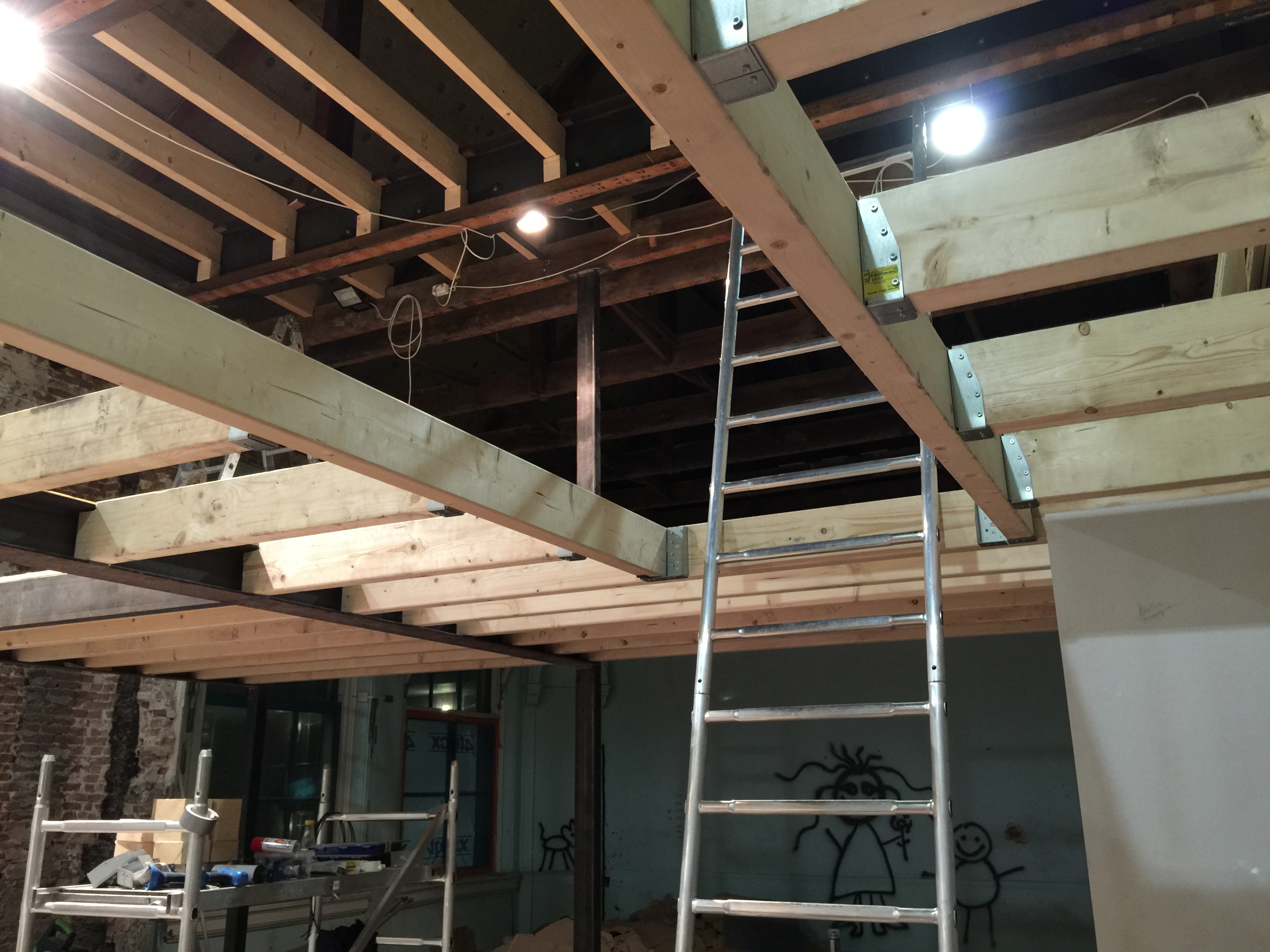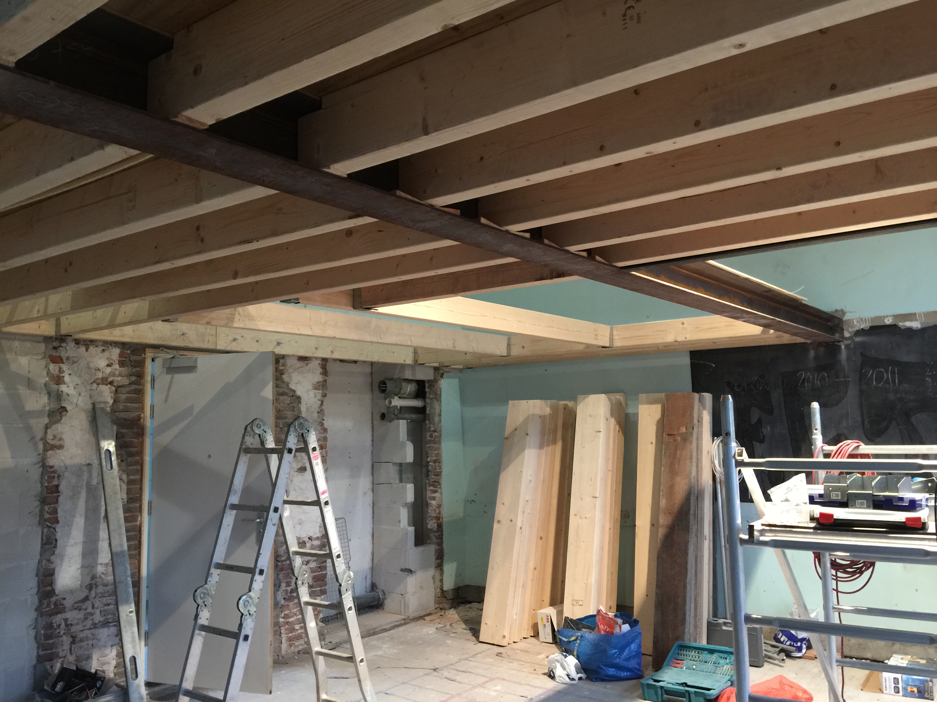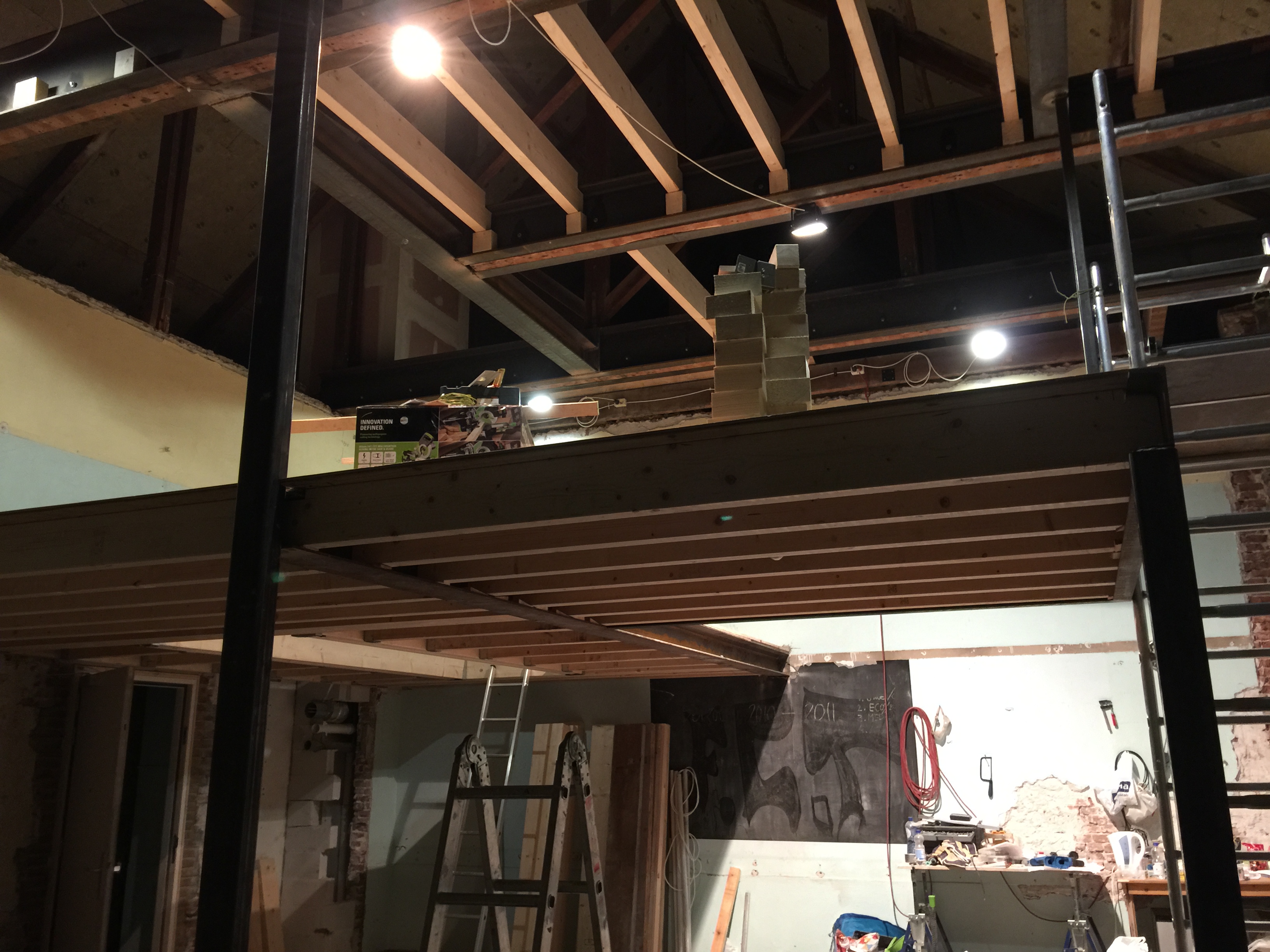 En dit is waar het voor vandaag stopt. Morgen weer hard aan het werk met de zolder, en zal er hier en daar nog extra staal aangebracht worden door de staalboer. Inmiddels is er ook al wat extra luxe in het pand: