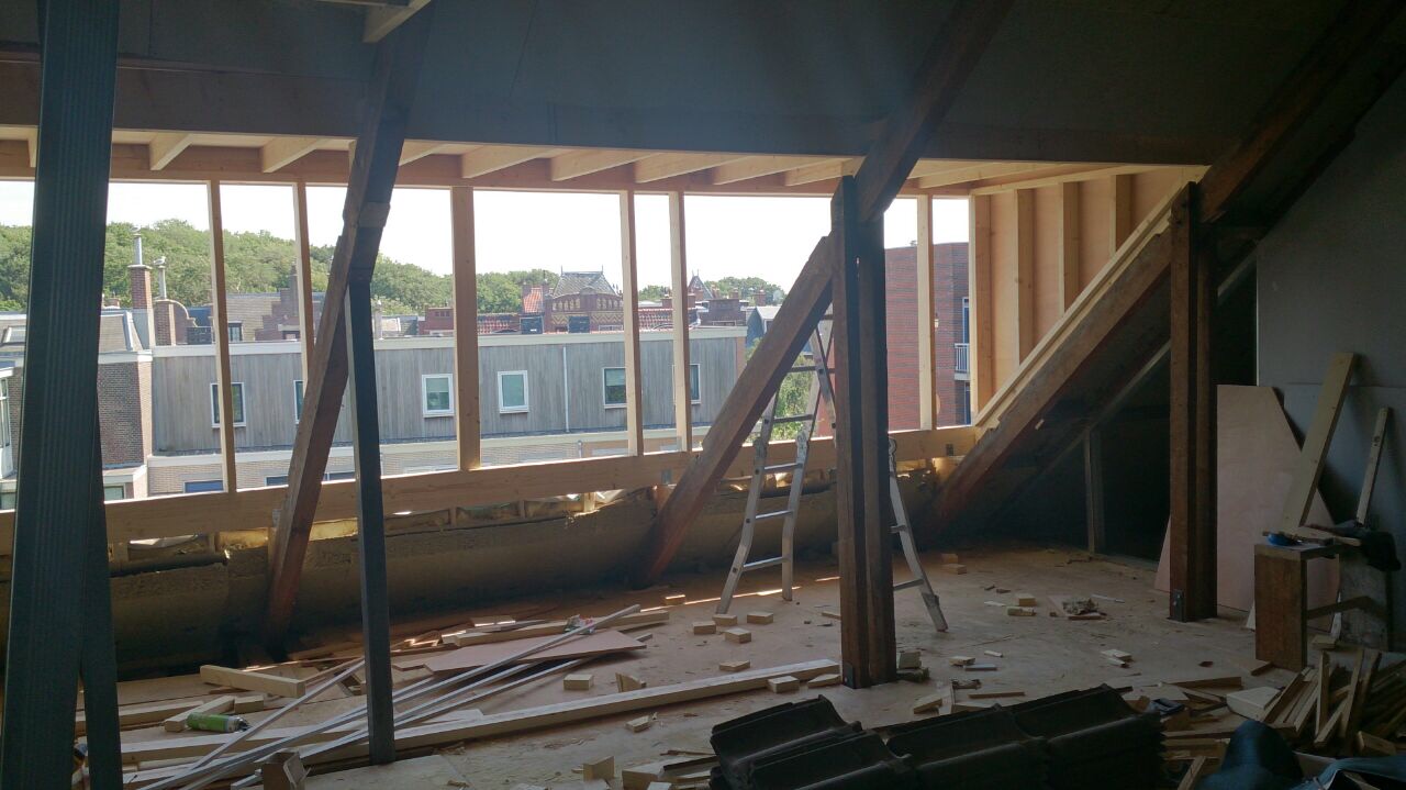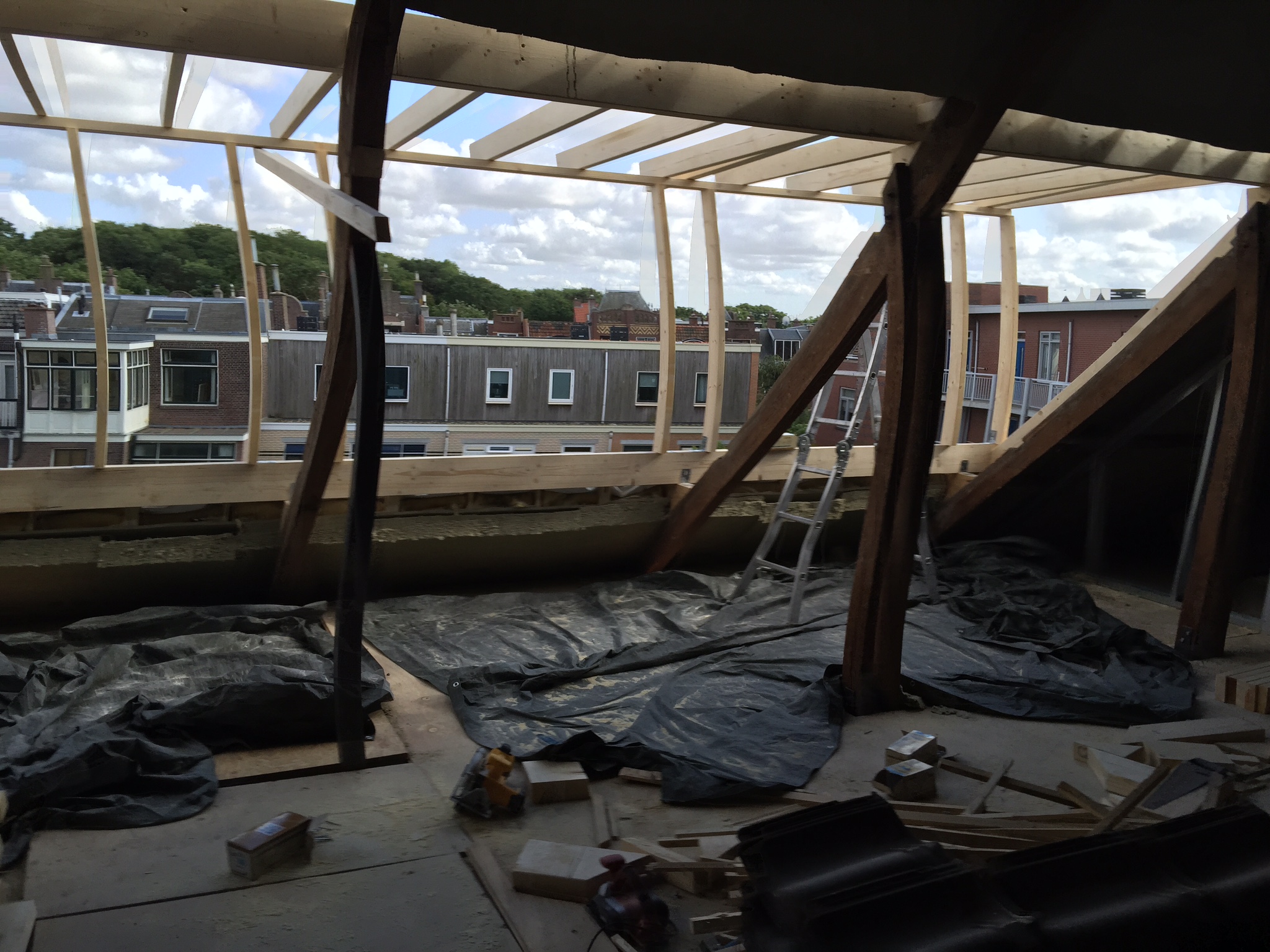 Onze dakkapel is geplaatst!! Met 8 meter lengte is het een behoorlijk gevaarte dat een enorme berg licht naar binnen brengt. Plaatjes zeggen veel meer: