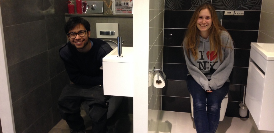 Maar om mee te beginnen allereerst de op de vloer uitgetekende badkamers.