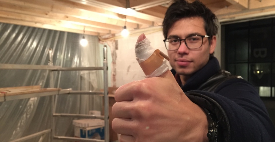 Ons eerste bedrijfsongeval is een feit. Op een plek waar verbouwd en geklust wordt door mensen zonder klusdiploma, is de kans op een ongeval realistisch aanwezig.